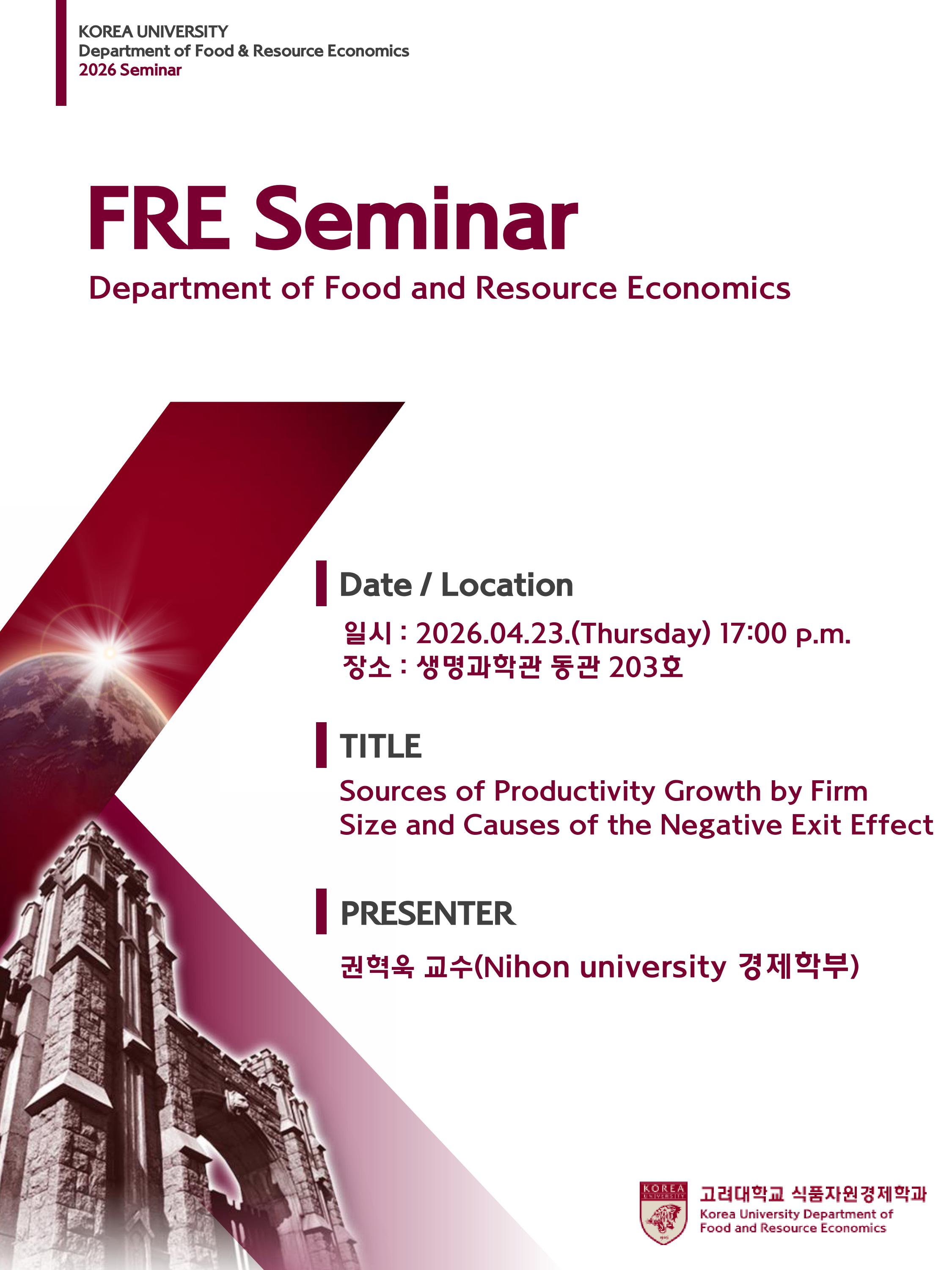 본 학과는 구성원의 연구역량 강화를 위하여 아래와 같이 FRE Seminar를 개최하고자 합니다.